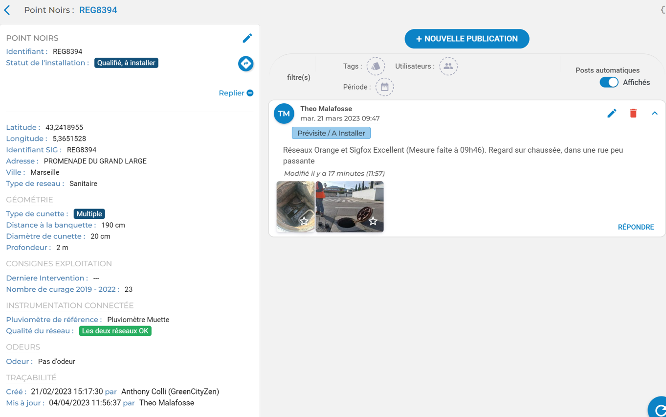 - Une photo de l’intérieur du regard et une vue de l’extérieur sont enregistrées dans le journal.