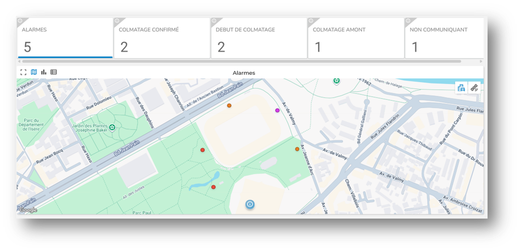 Elle permet d'accéder rapidement à l'ensemble du parc et aux alertes en cours sur les différents points.